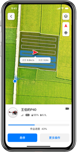 Automatic Route PlanningProgram the best flight based on battery life and remaining spray volume